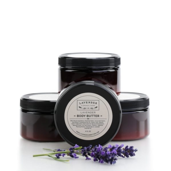 Our lavender body butter is a rich, creamy lotion perfect for extra dry, calloused or newly shaved skin. It’s also fantastic as a hand cream! It nourishes deeply, leaving your skin soft and supple, but not greasy. Made with our 100% pure lavender essential oil, the scent of lavender will linger and calm you with every application.